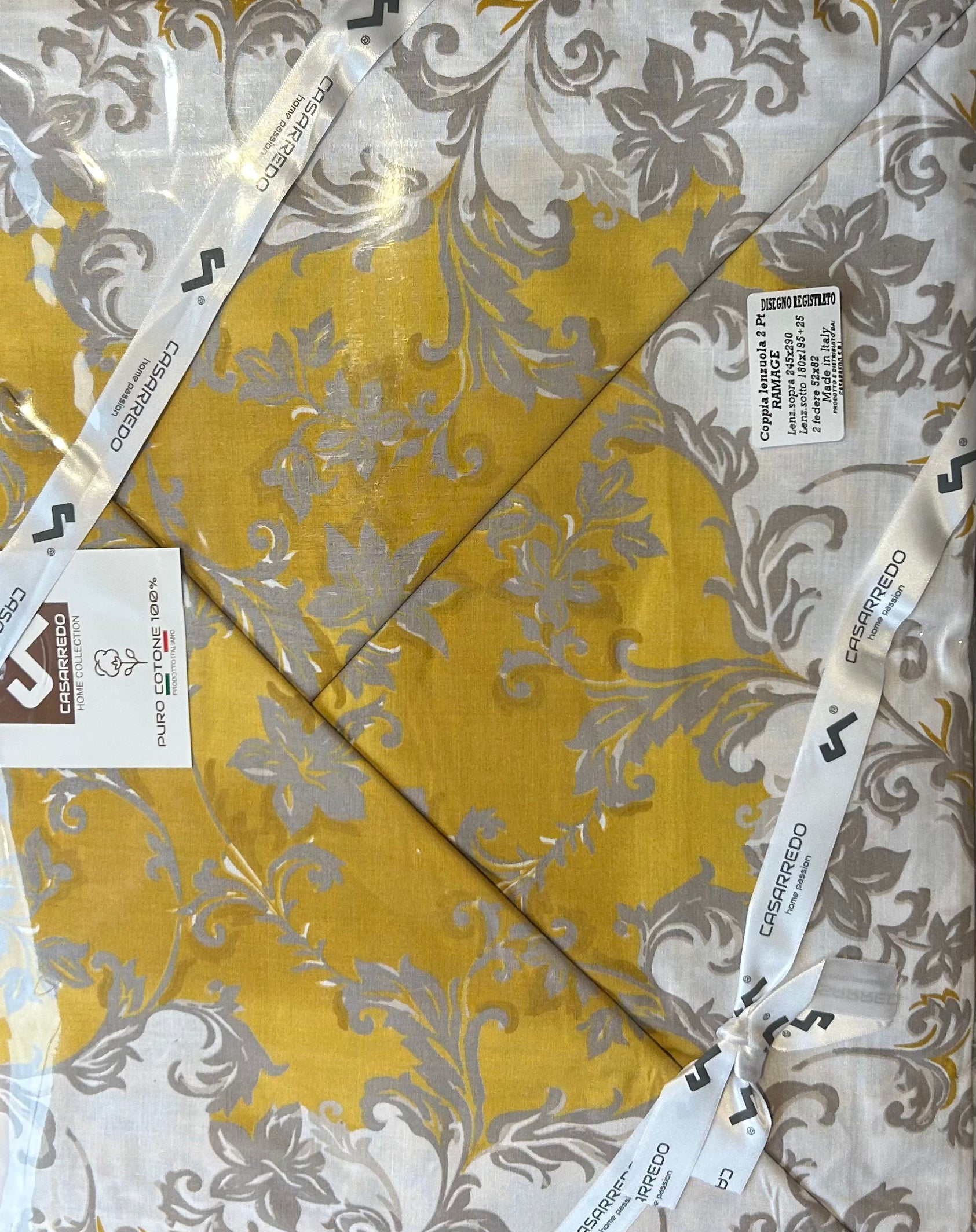 Lenzuola matrimoniali color grigio/giallo artigianali casarredo