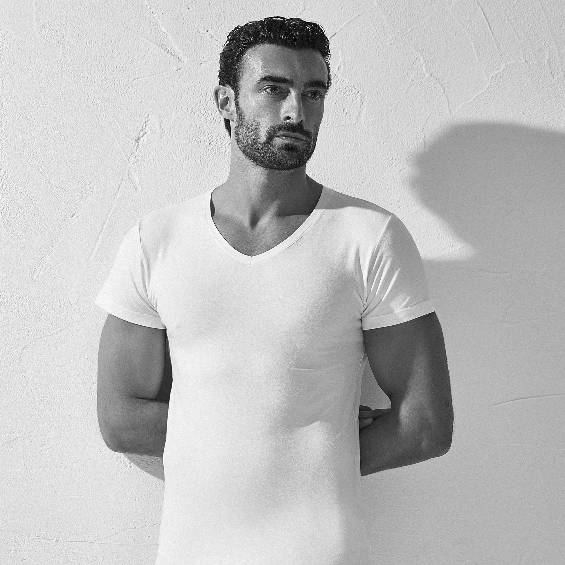 Maglietta uomo mezza manica a scollo a V in cotone modal confezione tre pezzi
